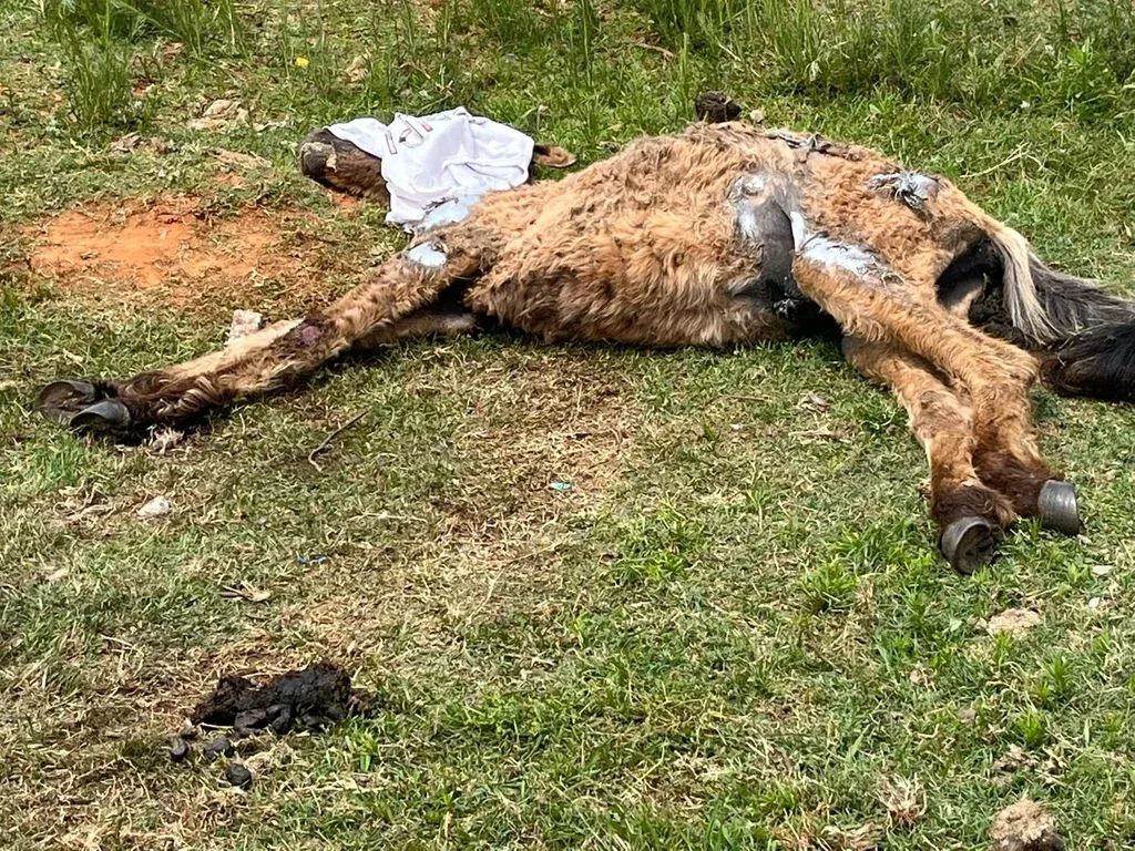 Animal agonizando tras se apaleado, otro de los rescates.