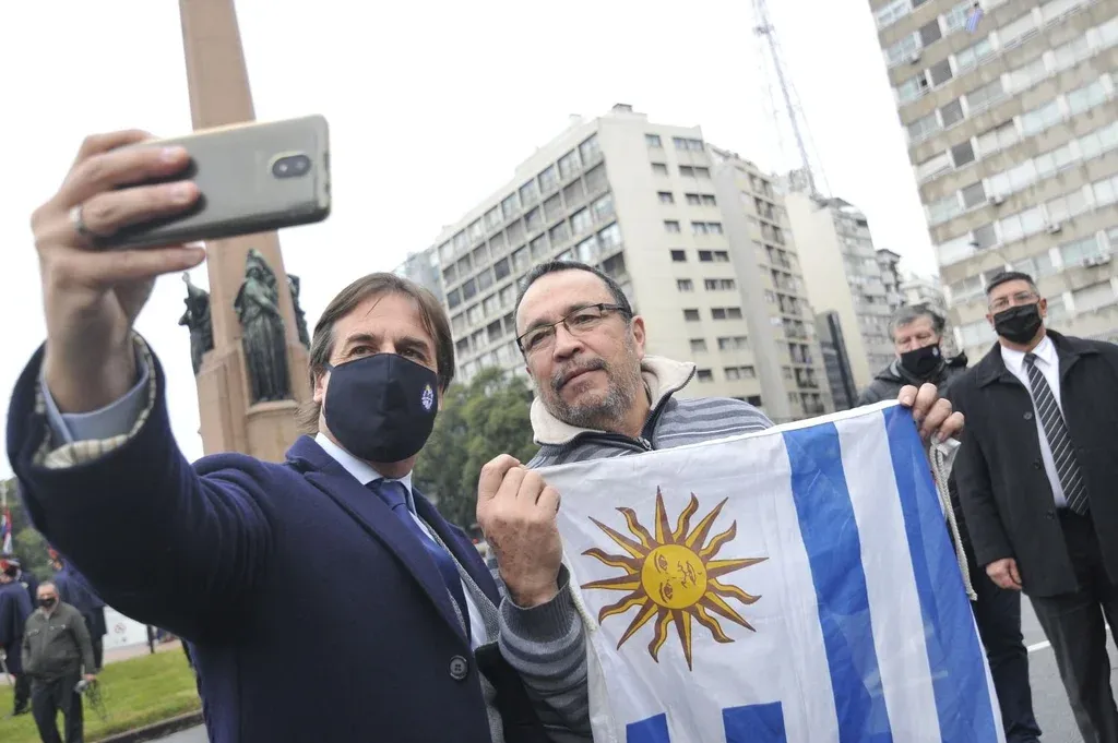 Algunos vecinos sacaron banderas uruguayas en los edificios que se asoman a bulevar Artigas. Y como es costumbre hubo selfies antes y después del acto protocolar. Una mujer lo interceptó diciendo que lo había votado y también a su padre, pero que le gustaba más el actual presidente porque “es más inteligente”. La mujer le dijo que esperaba que el coronavirus siguiera bajo control. “Hay que hacer un poquito más de esfuerzo”, le respondió el presidente.