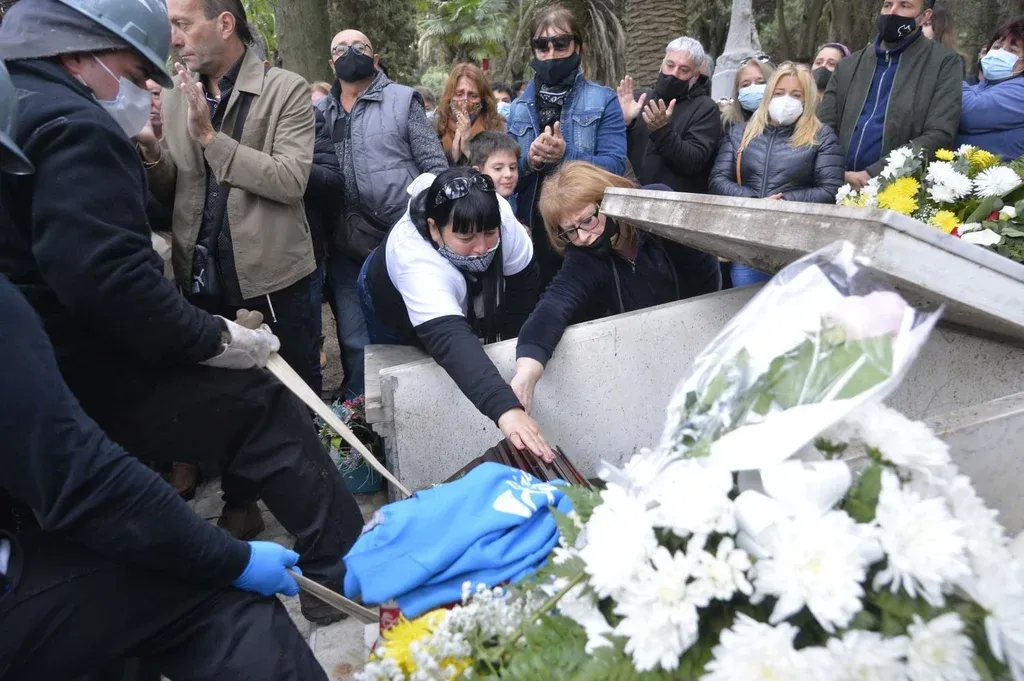Una mujer esperaba el cortejo con una rosa en la mano, envuelta en la bandera del conjunto. Rosa que unos minutos después dejaría sobre el mármol del panteón cerrado de Directores Asociados de Espectáculos Carnavalescos Populares del Uruguay (Daecpu). “Vamos gente, aplaudan y no dejen de aplaudir”, pidió Aldo Martínez y por última vez los aplausos de una multitud marcaron la despedida.