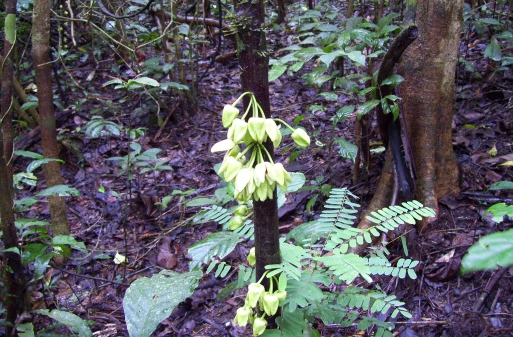 Este árbol de 4 metros de altura con un tronco ornado de grandes flores amarillo-verdosas fue descubierto en el bosque de Ebo, situado al norte de Douala, la capital económica de Camerún.