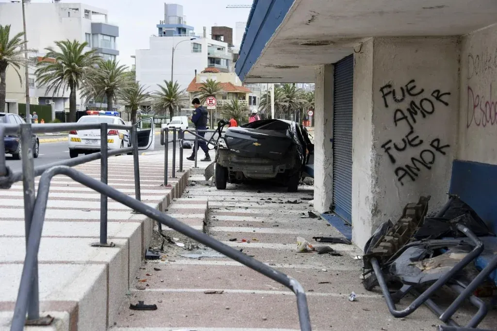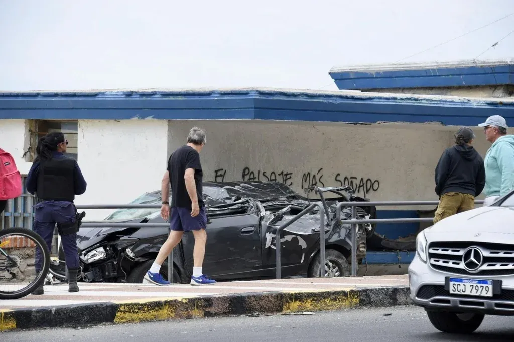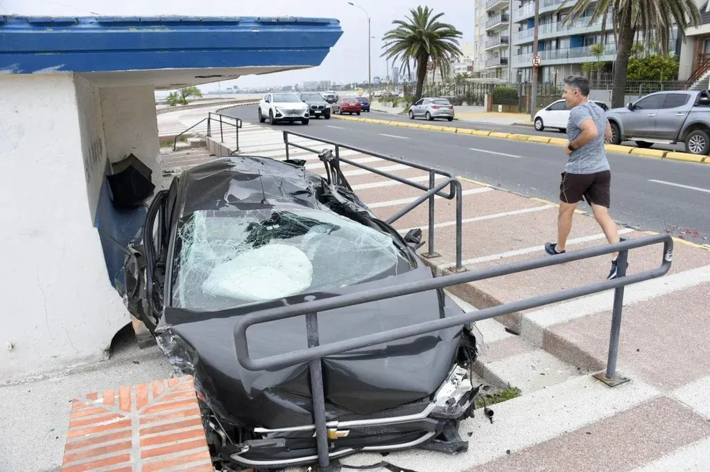 Un auto despistó y terminó incrustado en la entrada de un parador de la rambla de Malvín en un accidente de tránsito este viernes por la madrugada, confirmó El Observador.