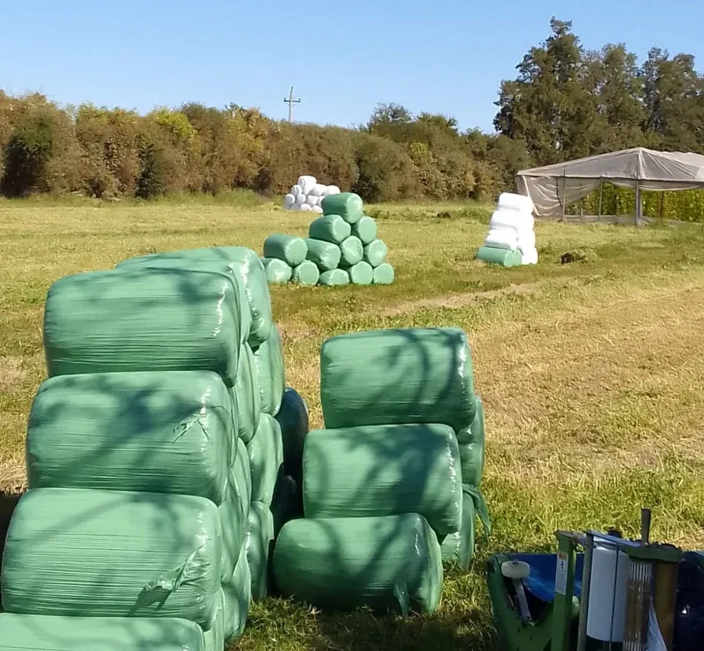 Los fardos, un recurso clave en medio de la sequía. En el predio granjero, con un solo empleado, produce en invernáculos tomate y morrón. Por problemas de disponibilidad de personal, está bajando algo la producción de esos rubros. Otras producciones son frutilla, tomate cherry, chaucha y berenjena. La mercadería se entrega a la distribuidora salteña Juan Guarino, que la comercializa en la ciudad y el excedente lo lleva a la Unidad Agroalimentaria Metropolitana (UAM).