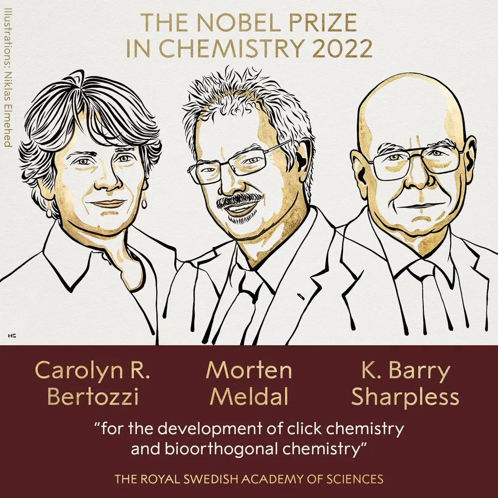 El último de los Nobel de disciplinas científicas, el de Química, fue otorgado hoy por la Real Academia Sueca al danés Morten Meldal y a los norteamericanos Carolyn Bertozzi y Barry Sharpless por su trabajo con moléculas y por el desarrollo de la “química del clic y la química bioortogonal”.