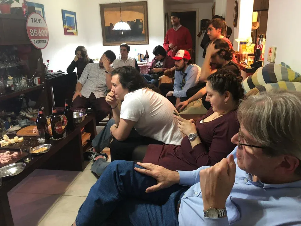 Detrás, en la pantalla silenciada, Talvi y Pasquet sonríen a cámara. “Están en todos lados”, dice alguien en la casa de Pocitos. La primera vez que se ve el aviso hay aplausos. A la quinta o sexta vez, el asunto se toma a broma. “Esto ya es spam. ¿Cuánto pusiste Ope?”, le preguntan al diputado. “Andrade vino preparadísimo, y a Ernesto lo vi muy bien”, reconoce Pasquet, que escucha al resto arriesgar resultados parciales. “Creo que vamos dos a uno ganando”, dice uno, aunque todos reconocen el don de su adversario. “Es bolche, eso sí, pero de los bolches es el mejor orador”, dice otro militante.
