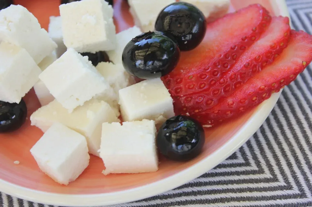 Una porción de Melón o Frutos Rojos con 2 cucharadas de Ricotta.