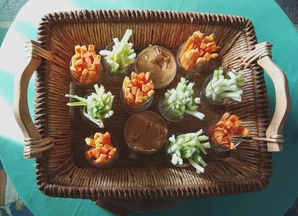 Palitos de verdura con hummus de garbanzo (1 a 2 cdas).