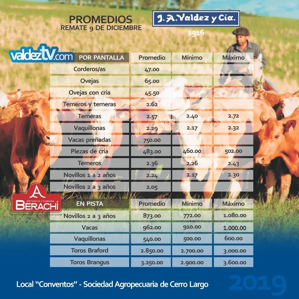 Un gran remate realizó Valdez y Cía de la mano de estancia Berachí, en una venta inédita para el país donde ofrecieron, además de la ya clásica venta virtual de la firma rematadora, animales Braford y Brangus del emblemático establecimiento.