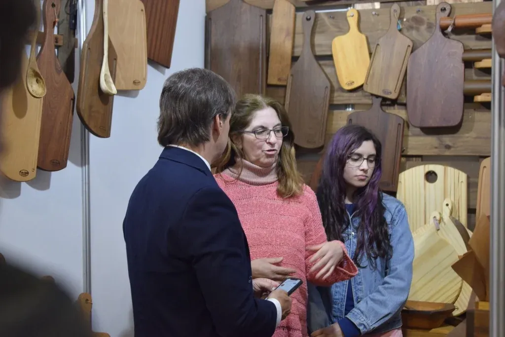 Al ver el gran movimiento de personas que se generó alrededor del presidente, Viriginia, la emprendedora a cargo de Loma (una marca de productos de cuero), aprontó un regalo: una yerbera de suela y una cuchara de guampa, "por si pintaba regalárselo", contó. Minutos después, el mandatario pasó por su stand y se detuvo a ver las carteras y billeteras que estaban expuestas. Fue ahí cuando la emprendedora le entregó el regalo, uno de varios de los que se llevó del lugar.