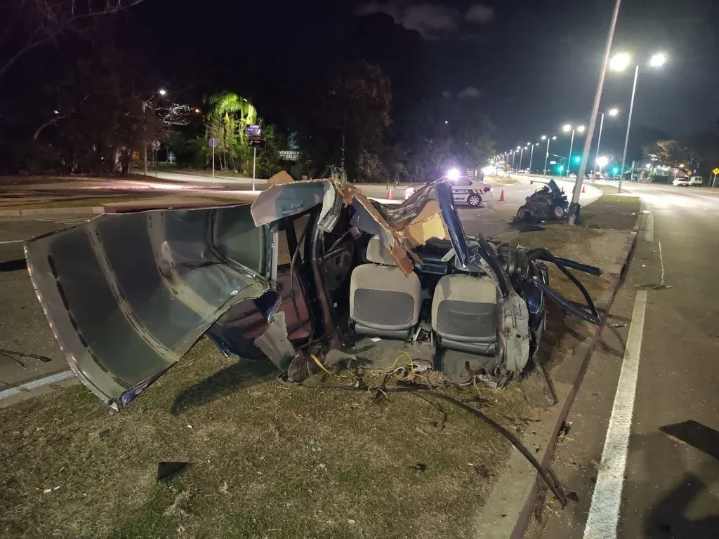 En la madrugada de este sábado un vehículo chocó contra una columna en la zona de Punta Gorda, en la esquina de Avenida Italia y Almirón. El auto quedó partido en dos, y su conductor, el único ocupante del coche, sobrevivió, aunque está internado en estado grave.