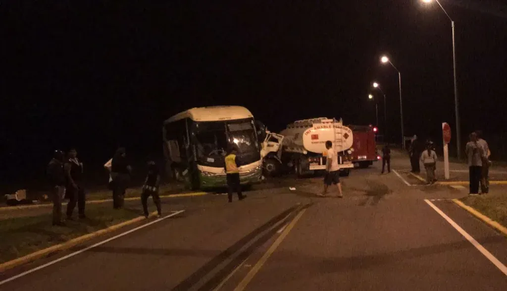 Este sábado sobre la hora 19.30 un camión cisterna de Ancap, que circulaba con 25.000 litros de combustible por la ruta 18 próximo a Vergara, en Treinta y Tres, chocó contra un ómnibus de línea interdepartamental.
