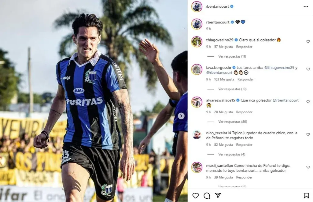 El posteo de Bentancourt “Qué rica goleador”, le escribió el volante que hoy juega en Montevideo City Torque.