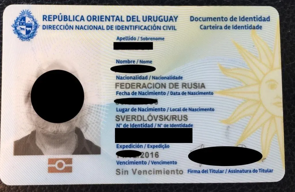 Cedido a El Observador Cédula de identidad de un ciudadano legal uruguayo, donde figura como nacional ruso