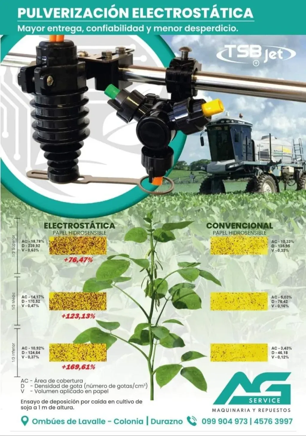 El primer premio fue otorgado a AG Service, por su equipo de pulverización electrostática. Posee una tecnología que garantiza el perfecto funcionamiento del ionizador durante todo el proceso, en cualquier condición climática, aún bajo lluvia.