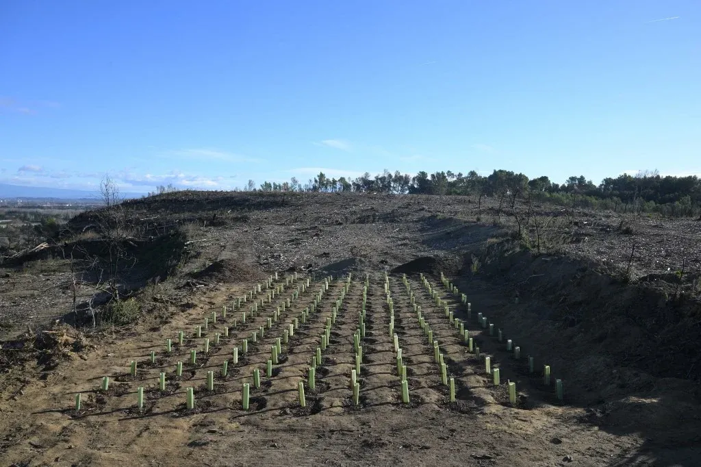 El macizo de la Montagnette, en el sureste de Francia, renace de sus cenizas con la plantación de especies más resistentes al fuego, meses después de un incendio que acabó con cerca de 1.650 hectáreas de vegetación mediterránea.
