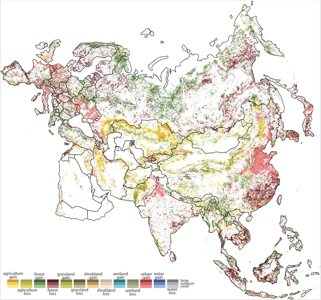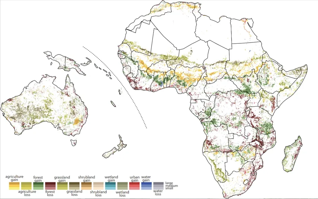 En el mapa, publicado en el International Journal of Applied Earth Observation and Geoinformation, se puede ver como el 22% de la superficie habitable de la Tierra se alteró de forma mensurable, en particular los bosques por la agricultura entre 1992 y 2015.