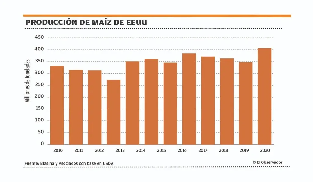 El stock estadounidense cae por segundo año consecutivo, de 25 millones de toneladas en 2019 a 16 millones en 2020 y pasará a 11 millones en 2021.