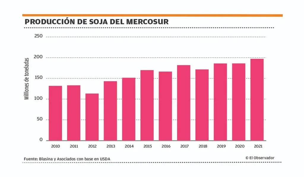 Paraguay y Uruguay, en cambio, mantienen producciones estables. En Uruguay la ganadería se hace firme y complementa a la agricultura, sin perder más superficie. Es factible que se mantenga el millón de hectáreas para la soja, en lo que en los últimos años se ha encontrado el equilibrio de la superficie.