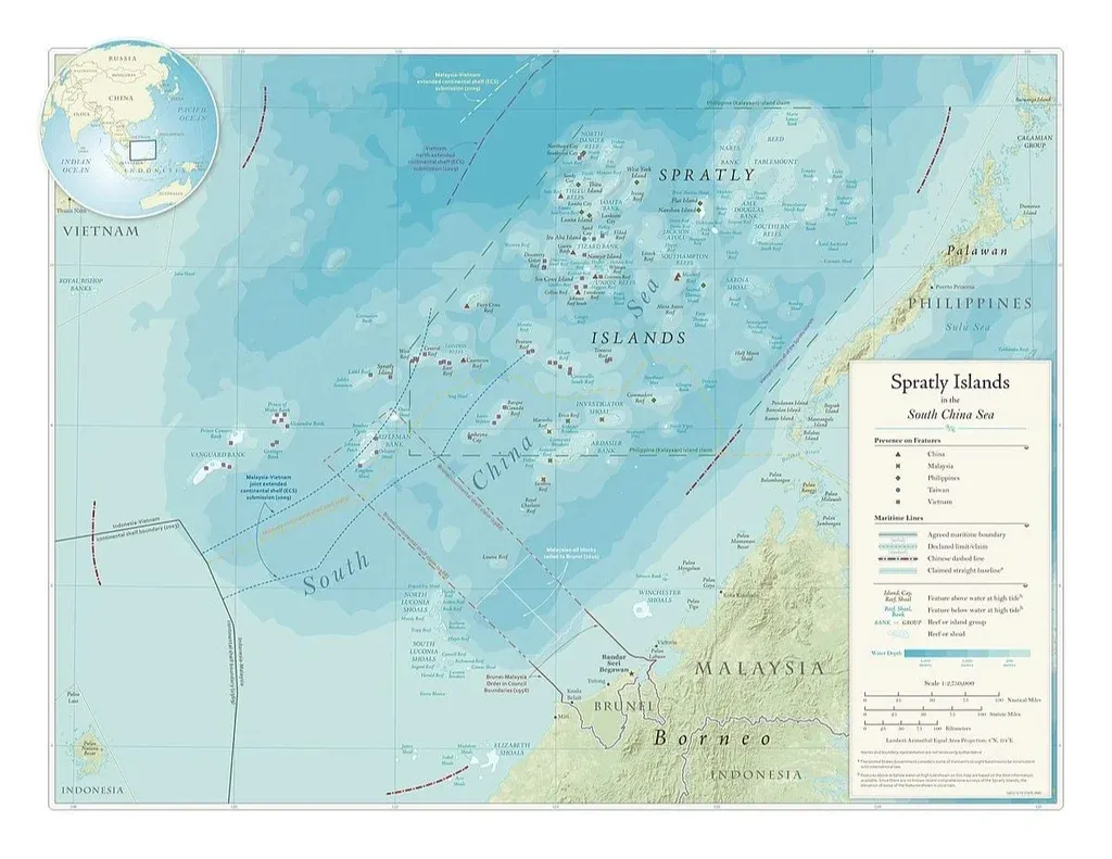 Las islas Spratly son un archipiélago que comprende más de 100 pequeños islotes y arrecifes rodeados de abundantes zonas de pesca y quizás recursos de gas y petróleo. China, Taiwán y Vietnam reclaman cada uno el grupo completo de islas, mientras que Malasia y Filipinas reclaman cada uno una parte proporcional de ellas.