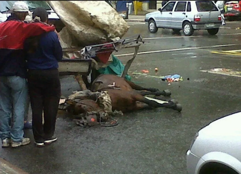 Como consecuencia del impacto del vehículo, que viajaba con destino a Plaza Independencia, murió el caballo. Además, una señora mayor resultó lesionada con un traumatismo lumbar y fue trasladada a Médica Uruguaya. No corre peligro de vida.