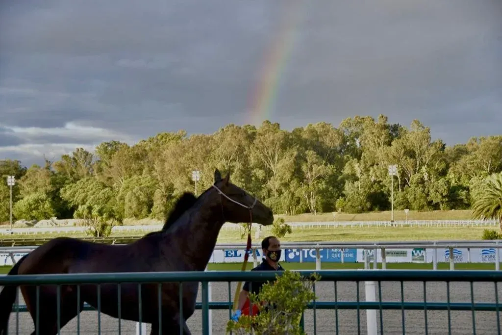 Eso fue sustituido en cada carrera por el ruido de los cascos de los caballos llegando al galope en la recta final. Una vibrante emoción sin el aderezo del público. Un Ramírez diferente. Silencioso en su majestuoso entorno, recortado en el crepúsculo por un arco iris cautivante. Con su entorno cuidado, con su iluminación espectacular al caer la noche, con su organización cuidada.