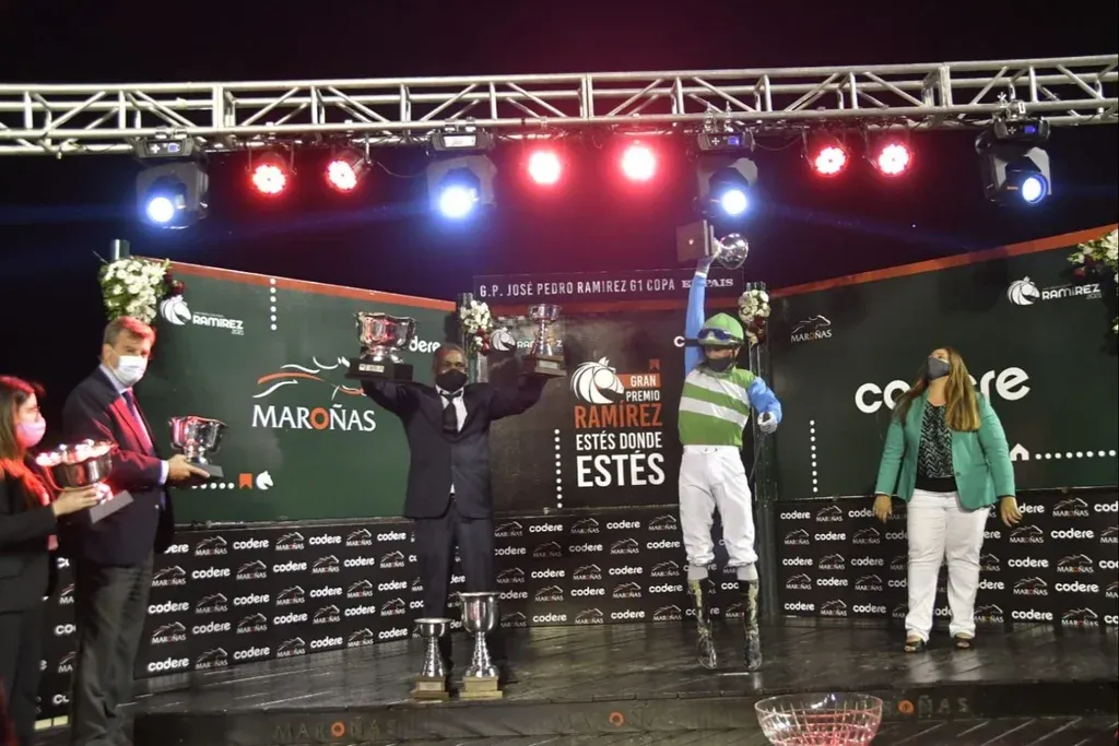 "Hacer el 1-2-3 en un Ramírez es algo que no acredito. Creía en los cuatro caballos, pero me sorprendió hacer el 1-2-3", dijo Luiz Olivera de tapabocas y en portuñol, en la conferencia de prensa posterior a la carrera que se llevó a cabo en el palco del Hipódromo de Maroñas.