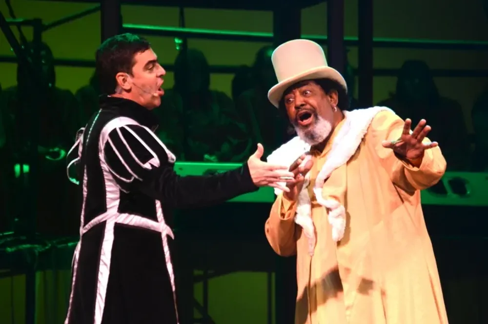 Rubén Rada aparece en el segundo acto en el rol de Yobinbras, rey del carnaval carioca, y oxigena un poco la puesta con su voz y su carisma, pero la participación es muy breve. No obstante, en el otro lado de la balanza, también hay breves apariciones de personajes que desafinan.