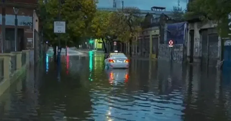 En las primeras horas de la mañana un taxi quedó atrapado en la inundación de la calle por varias horas. Finalmente el vehículo fue retirado por una camioneta de la Dirección Nacional de Bomberos, informó Telemundo.