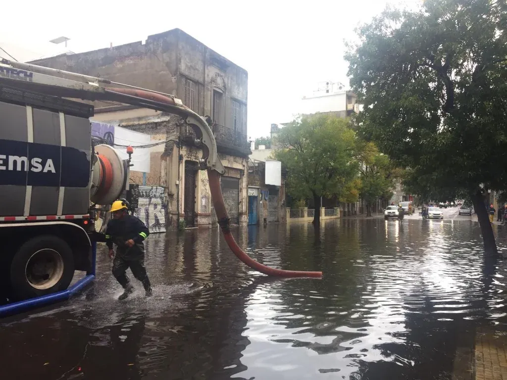 –¡Está bajando! –gritó un funcionario de la empresa Ciemsa que trabajaba en la mañana de este lunes en un tramo de la calle Fernández Crespo que se inundó por las abundantes lluvias. El agua había llegado a unos 30 centímetros de altura, según dijo un funcionario a El Observador mientras caminaba por el agua que le tapaba todas las botas de lluvia.