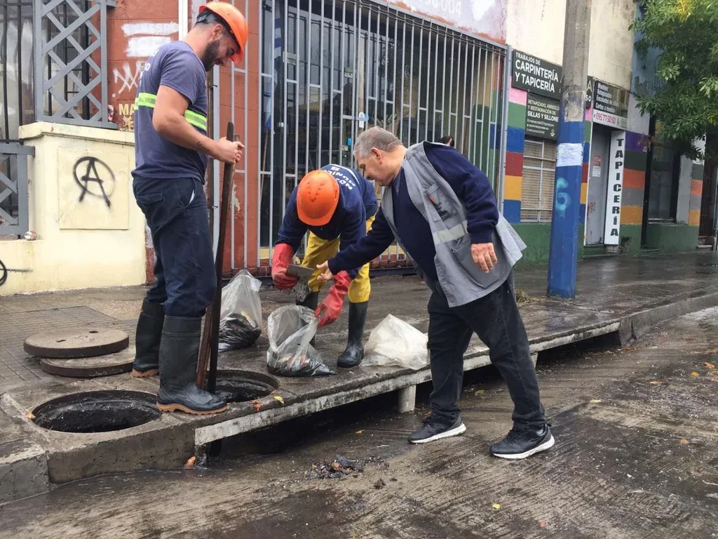 Mientras los trabajadores de la empresa, del municipio B y de la Intendencia de Montevideo (IM) buscaban las bocas de tormenta y los colectores, dos vecinos observaban la escena, tratando de indicarles a los trabajadores dónde estaban.