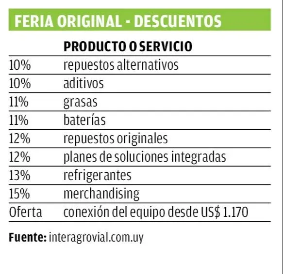 También hay otro plus: un descuento de 5% en el caso de la primera compra que se haga on line (en interagrovial.com.uy y en posventaisa.com.uy).