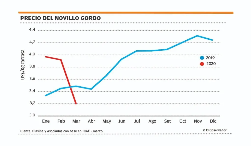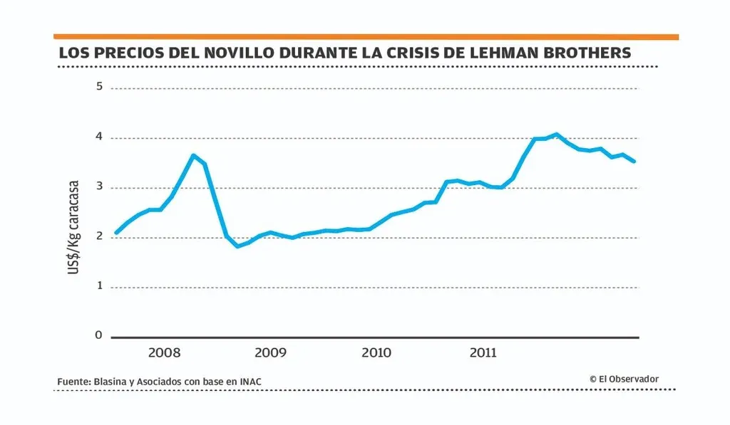 Si la tendencia se afianza, volverá a haber al menos una comercialización que permita a los productores vender. En la crisis de Lehman Brother, entre setiembre de 2008 y enero de 2009, los precios cayeron a la mitad, de dos a un dólar por kilo vivo. También desde un precio récord en aquel entonces a uno muy bajo. En aquel entonces, considerando precios por kilo de carcasa, el descenso fue de US$ 3,60 a US$ 1,95 en su momento de máxima incertidumbre para ir gradualmente recuperando y retomar la normalidad un año después.