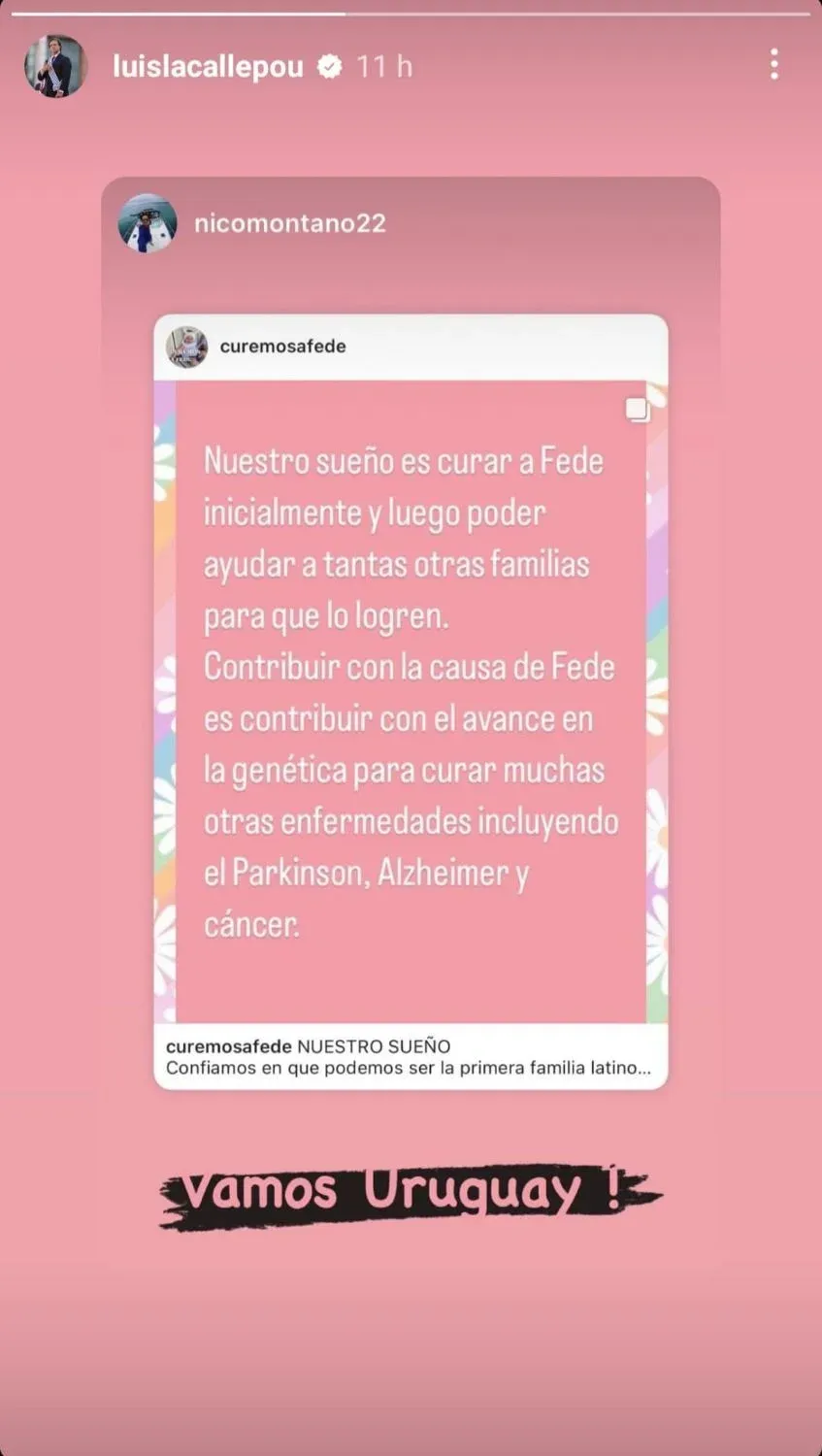 Para poder financiar esta etapa, la familia de Federica necesitar recaudar US$ 500 mil. Varias personalidades del país se solidarizaron y compartieron la historia en la que alientan a la población a aportar dinero. Entre ellas se encontró el presidente de la República, Luis Lacalle Pou, quien escribió: "Vamos Uruguay!".