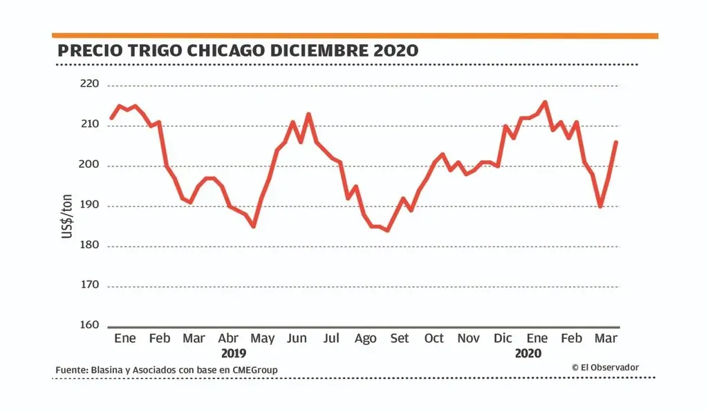 Todavía no queda claro si el coronavirus generará un salto en la demanda. Fernando Villamil, broker de granos de Agrosud, dijo a Blasina y Asociados que hay una gran incertidumbre en el mercado por el coronavirus. “La principal incertidumbre es como se va a recomponer la economía mundial. Las compras de trigo de China a Estados Unidos fueron una señal positiva y, si no hay a nivel país alguna restricción de logística al momento de la siembra del cultivo, el área debería mantenerse”.