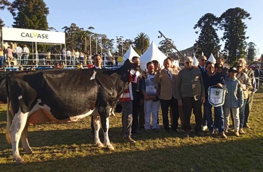 Forma parte de un rodeo lechero de 1.0000 ejemplares, y es parte de las vacas que están en producción actualmente, que son 850. La Gran Campeona Suprema tiene una producción de 50 litros de leche diaria.