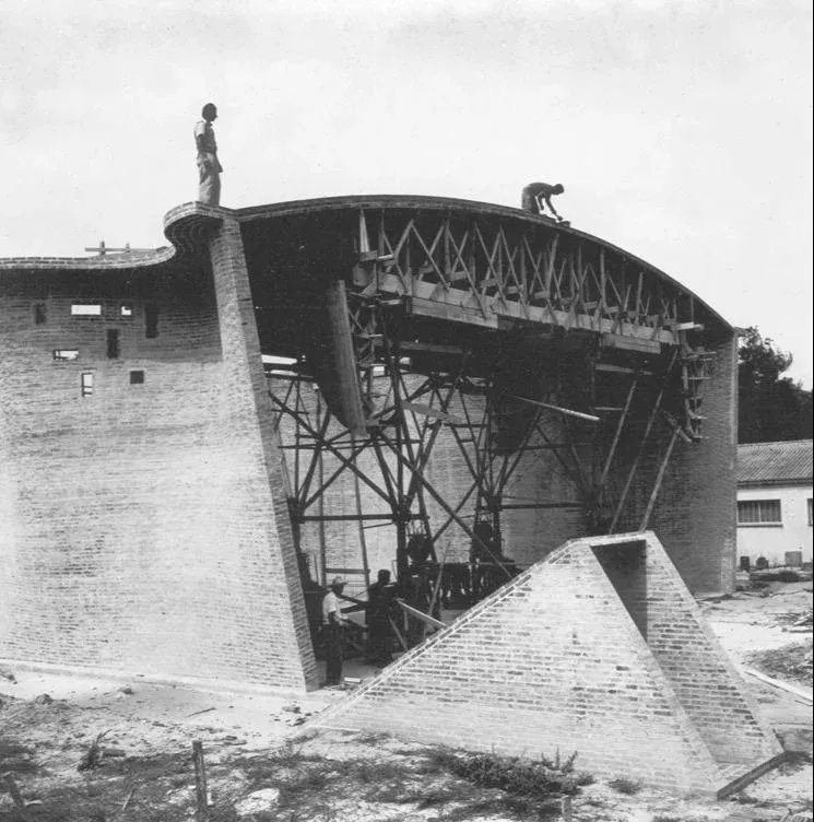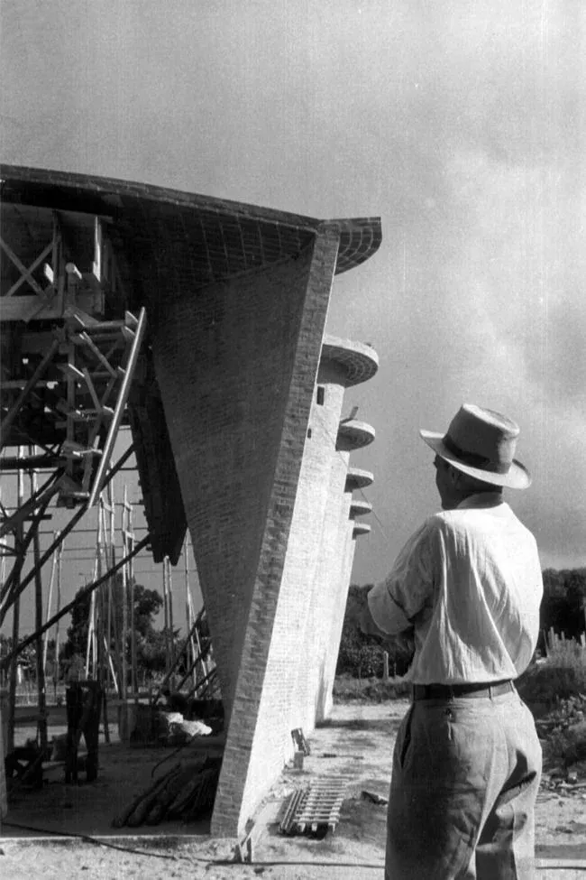 Archivo Dieste y Montañez S.A. Eladio Dieste durante la construcción de la Iglesia de Atlántida