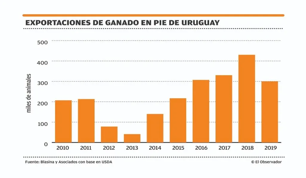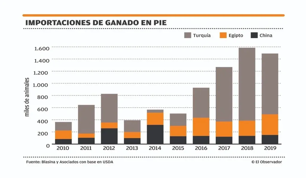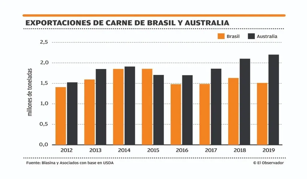 Por un lado, los vecinos logran entrar en la plaza local. En 2019 las importaciones de carne vacuna de Uruguay alcanzarían un récord histórico de 30.000 toneladas peso carcasa, según proyectó el USDA. Esto es casi 20% del consumo interno. Para 2018 prevé que las importaciones totalicen 20.000 toneladas, triplicando las 7.000 importadas en 2017. Hasta julio de 2018, más del 80% de las importaciones eran de Brasil y el resto de Paraguay. En agosto, y por primera vez en una década, Uruguay importó carne de res de Argentina.