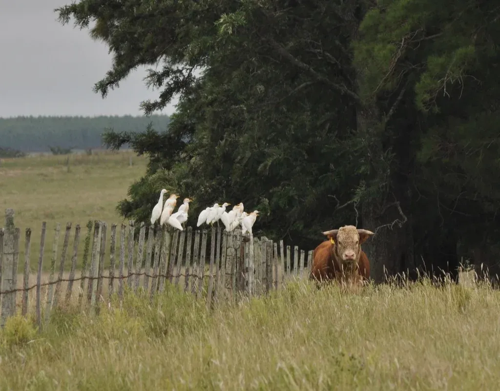 Primer premio. Autor: El Baqueano. Foto tomada en febrero de 2019 con una cámara Nikon D90 y un lente AF Nikkor 300 mm F4, en el potrero Rincón de El Baqueano, 3ª seccion de Durazno. Las aves son las populares garzas boyeras, Bubulcus Ibis, y el toro es El Baqueano Advance 5212-14 “Gorka”