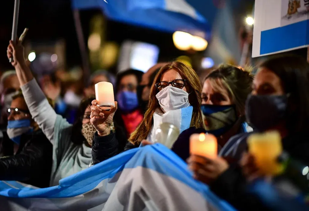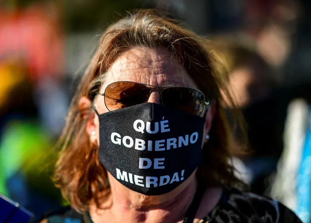 Ronaldo Schemidt / AFP Los argentinos han salido a las calles en los últimos meses para manifestarse en contra del gobierno de Alberto Fernández El gobierno argentino está sufriendo no solamente una crisis social y sanitaria. Está acusando un duro golpe político porque quedó devaluada su principal premisa discursiva: que la recesión económica era el inevitable precio a pagar para cuidar la salud de la población, y que aquellos países que no lo hacían terminarían pagando un alto costo. La realidad muestra que Argentina se encamina a ser uno de los países más afectados por el covid-19, con el agravante de que la herramienta de la cuarentena se desgastó y ya resulta difícil su aplicación en varias regiones del país. Pero, además, la caída de la economía es peor que la de aquellos países con los que el presidente hacía sus comparaciones. El último dato de actividad marca una caída interanual de 13%, con el agravante de que cuando se inició la emergencia sanitaria Argentina ya tenía un acumulado de dos años de recesión.