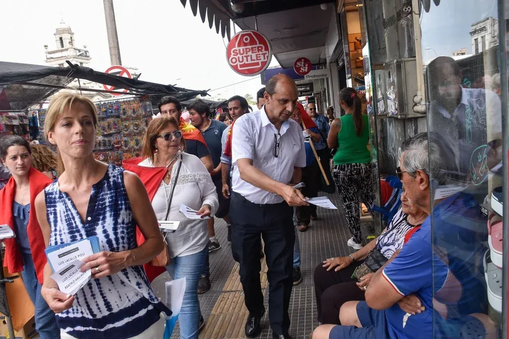 Las banderas blancas y coloradas se agruparon junto con las de Uruguay en las cuadras de la recorrida. “Disculpe la molestia, ¿quiere la lista de Luis Lacalle?”, decía Radío a los transeúntes o comerciantes de Paso Molino. Su tono pareció dar en la tecla. Eran uno de los que más listas entregó.