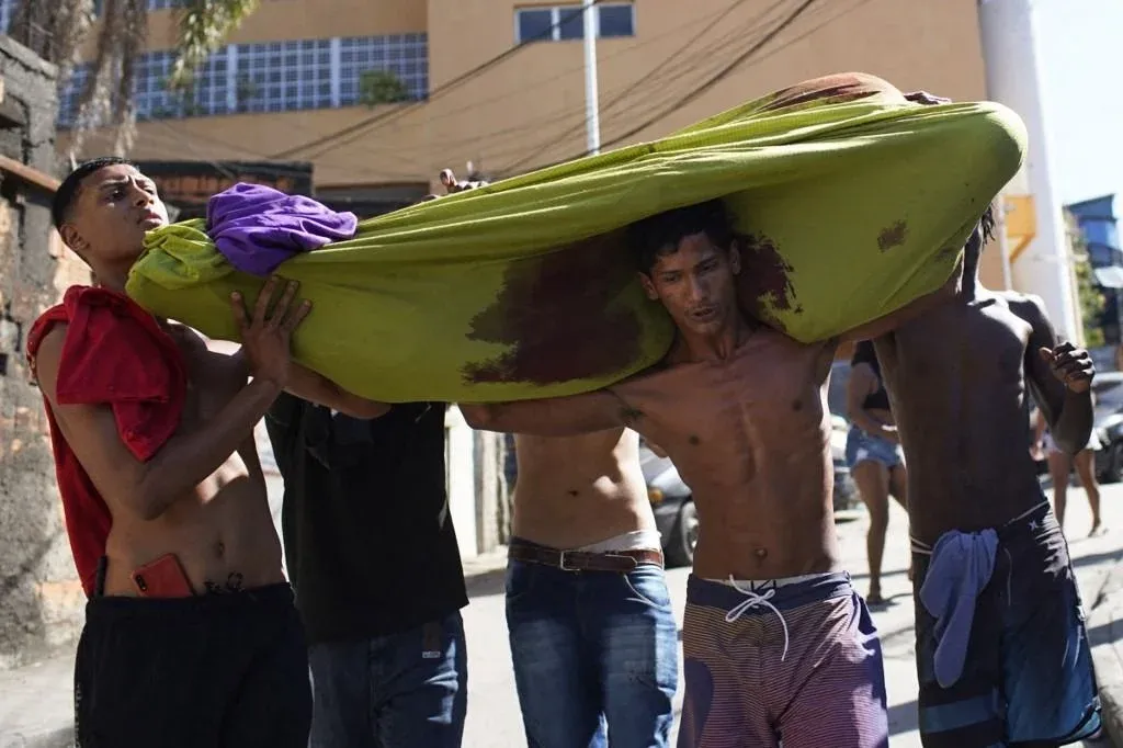 MAURO PIMENTEL / AFP Residentes del Complejo do Alemao cargan los cuerpos de los muertos en el operativo policial La redada policial ha levantado una ola de protestas debido a la brutalidad policial y el uso indiscriminado de la fuerza sobre sospechosos como parte de una estrategia oficial basada en la realización habitual de grandes operaciones en las favelas que suelen terminar con gran número de muertos y heridos, como la realizada en mayo en Villa Cruzeiro, donde fueron muertas 20 personas.