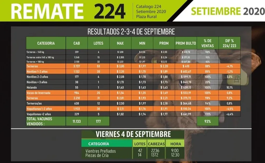 Una excelente calidad en los lotes ofertados, con ganados realmente excepcionales, bien definidos dentro de sus razas, derivaron en buenas colocaciones en el segundo día de ventas en el remate 224º de Plaza Rural, desarrollado este jueves 3 de setiembre.