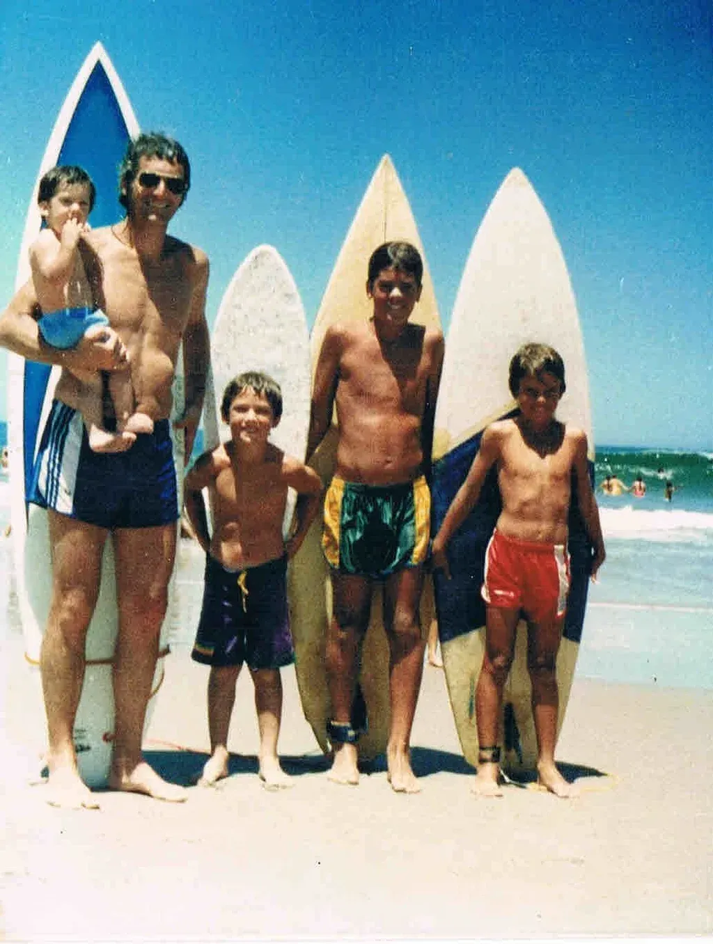 Los Botes, La Paloma, 1988. Ariel y sus hijos: en brazos Santiago, Sebastián, Daniel y Pablo