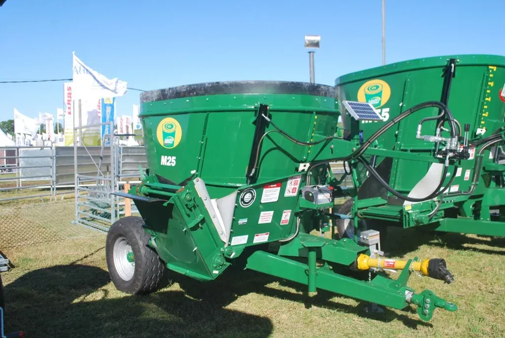 La empresa Mary presentó en esta muestra su mixer M25, utilizado para mezclar la ración y especializado en picado de fibra larga. Se trata de un producto 100% nacional en una empresa que tiene 56 años en el mercado.