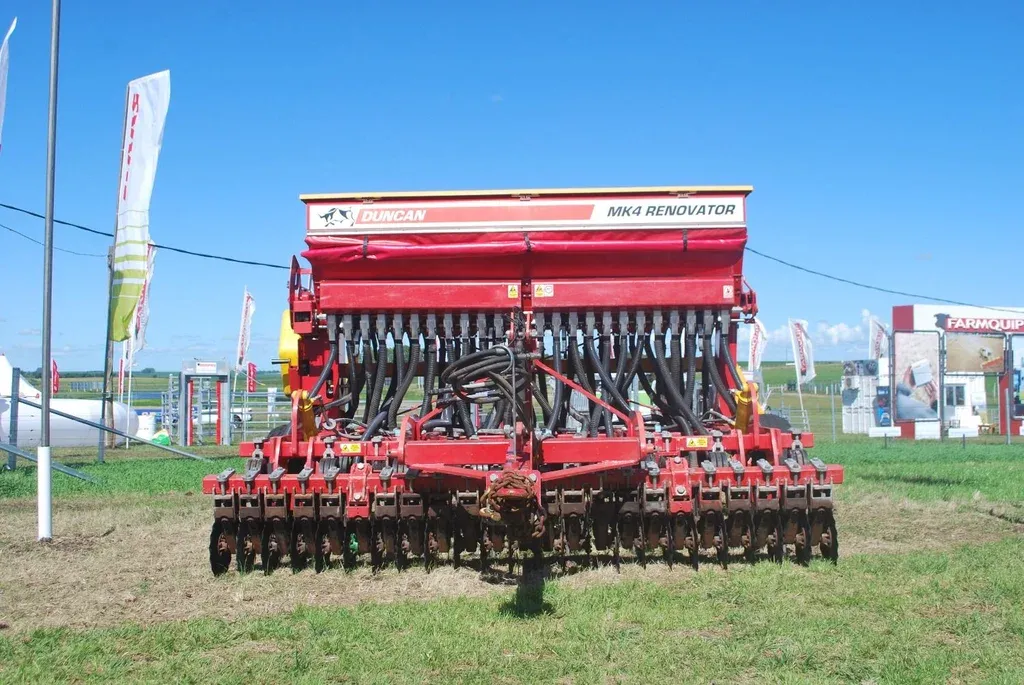 Toremor SA optó por exhibir su sembradora específica para pasturas marca Duncan, de origen neozelandés. La tecnología siembra con 12 centímetros de distancia entre hileras.