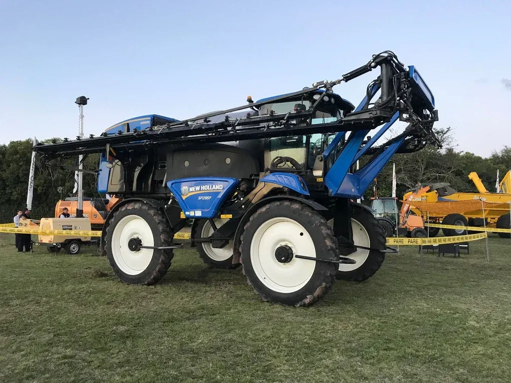 En tanto, New Holand destacó su Pulverizador SP285F motor 285 HP de origen estadounidense. La máquina cuenta con un baral delantero de 36 metros y un rodado 390/70 R50. Piloto automático. Trocha variable hidráulica en lo ancho y en lo alto.