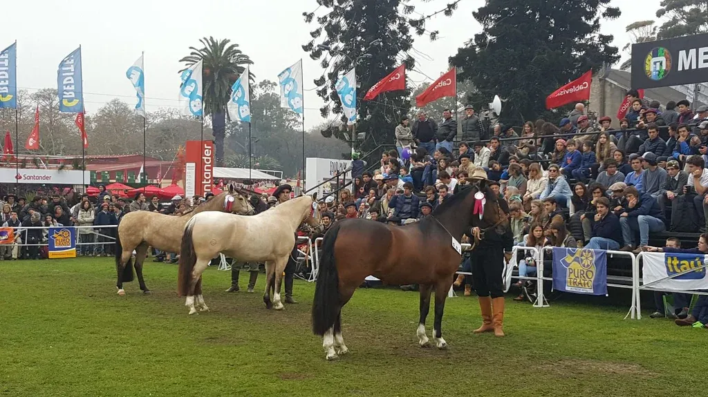 Una yegua de pelo bayo, la del box 595, se coronó como Campeona Yegua Mayor, Gran Campeona y Mejor ejemplar sin distinción de sexo en la pista de los Criollos, este viernes, en el marco de la 113ª Muestra Internacional de Ganadería organizada por la Asociación Rural del Uruguay (ARU), la Expo Prado 2018.