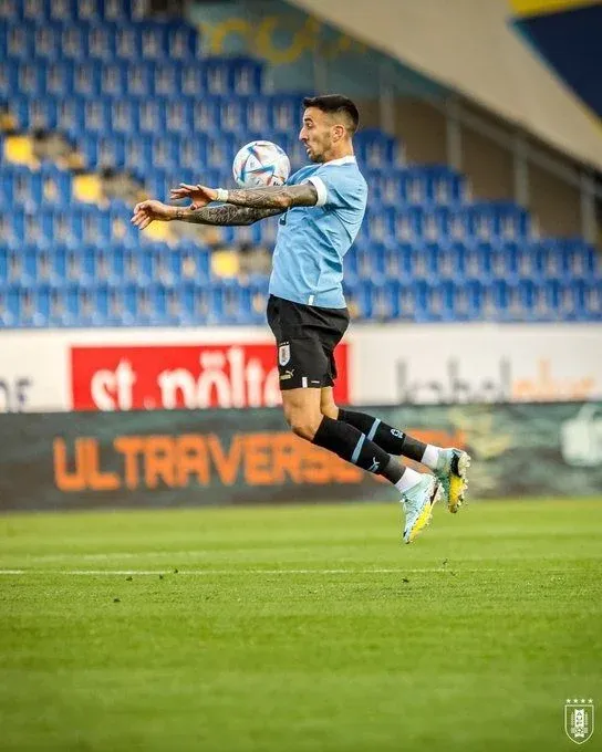 Agustín Rogel (4): llegó al estadio de St. Pölten como suplente y lo llamaron a actuar sin previo aviso. La defensa de Uruguay no tuvo una buena noche, tampoco el zaguero de Hertha Berlín.