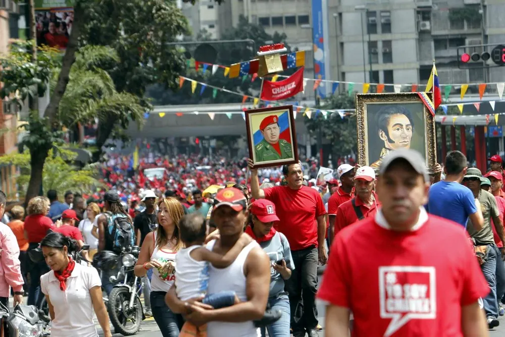 La multitud estaba teñida de rojo y varios llevaban caretas del comandante. No faltaban los que portaban camisetas o afiches con la frase “Yo soy Chávez”.