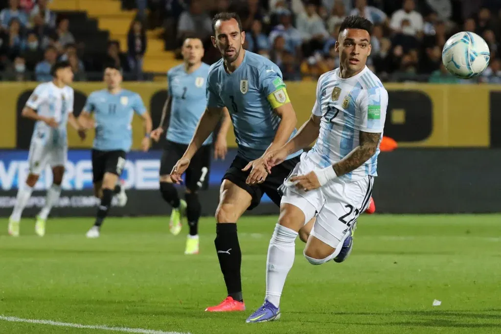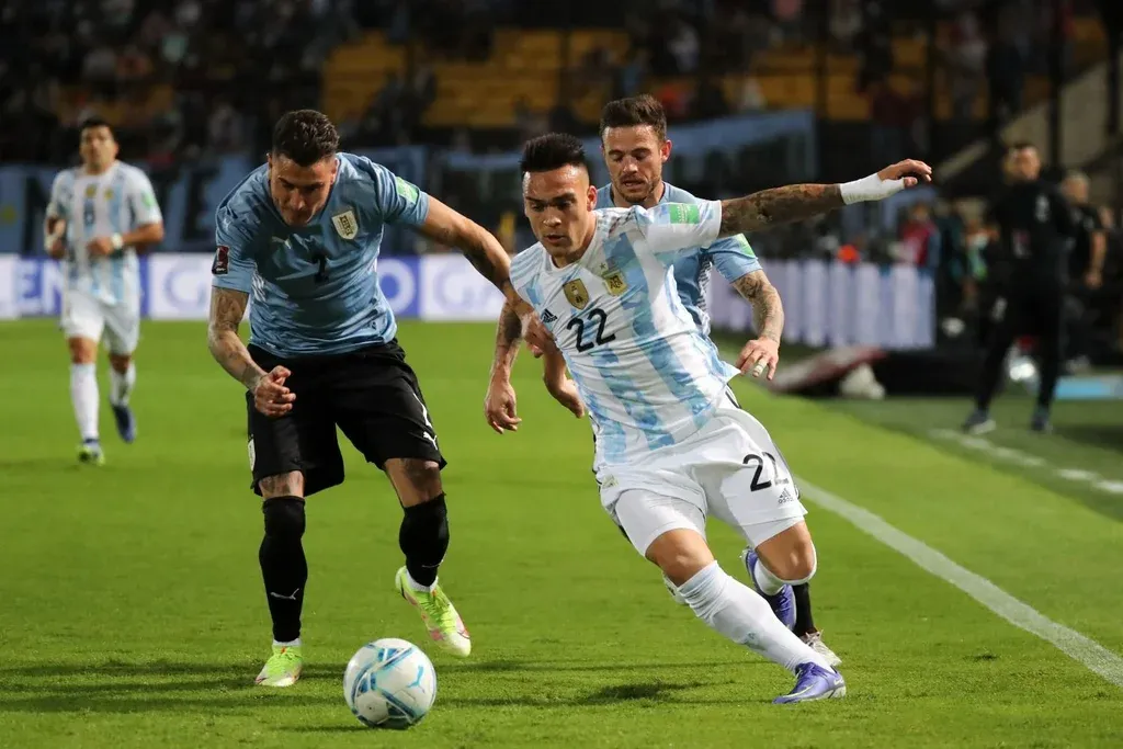 Paulo Dybala y Lautaro Martínez picaban con peligro por detrás de los volantes uruguayos.