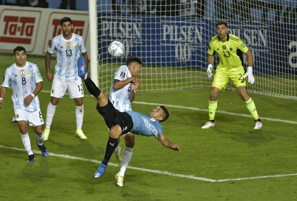 La pelota le llegó a Suárez y su remate pegó en el palo derecho de Dibu Martínez. El rebote le volvió a quedar al salteño y la pelota se fue apenas afuera. Se salvó Argentina.